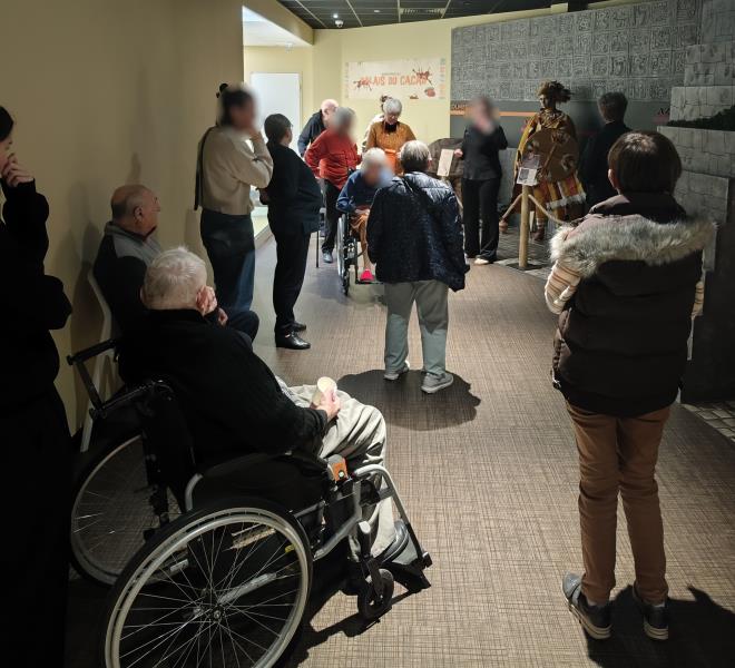 Les résidents ont ensuite pris part à un atelier sensoriel autour des odeurs, où ils ont été invités à deviner différentes senteurs liées au chocolat, stimulant la mémoire et les sens de manière ludique.
