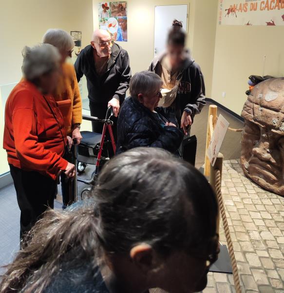 La visite a débuté par un moment historique, retraçant l’histoire du chocolat, de l’origine de la fève de cacao jusqu’à son arrivée en Europe. Ce temps d’échange a suscité curiosité, souvenirs et discussions.
